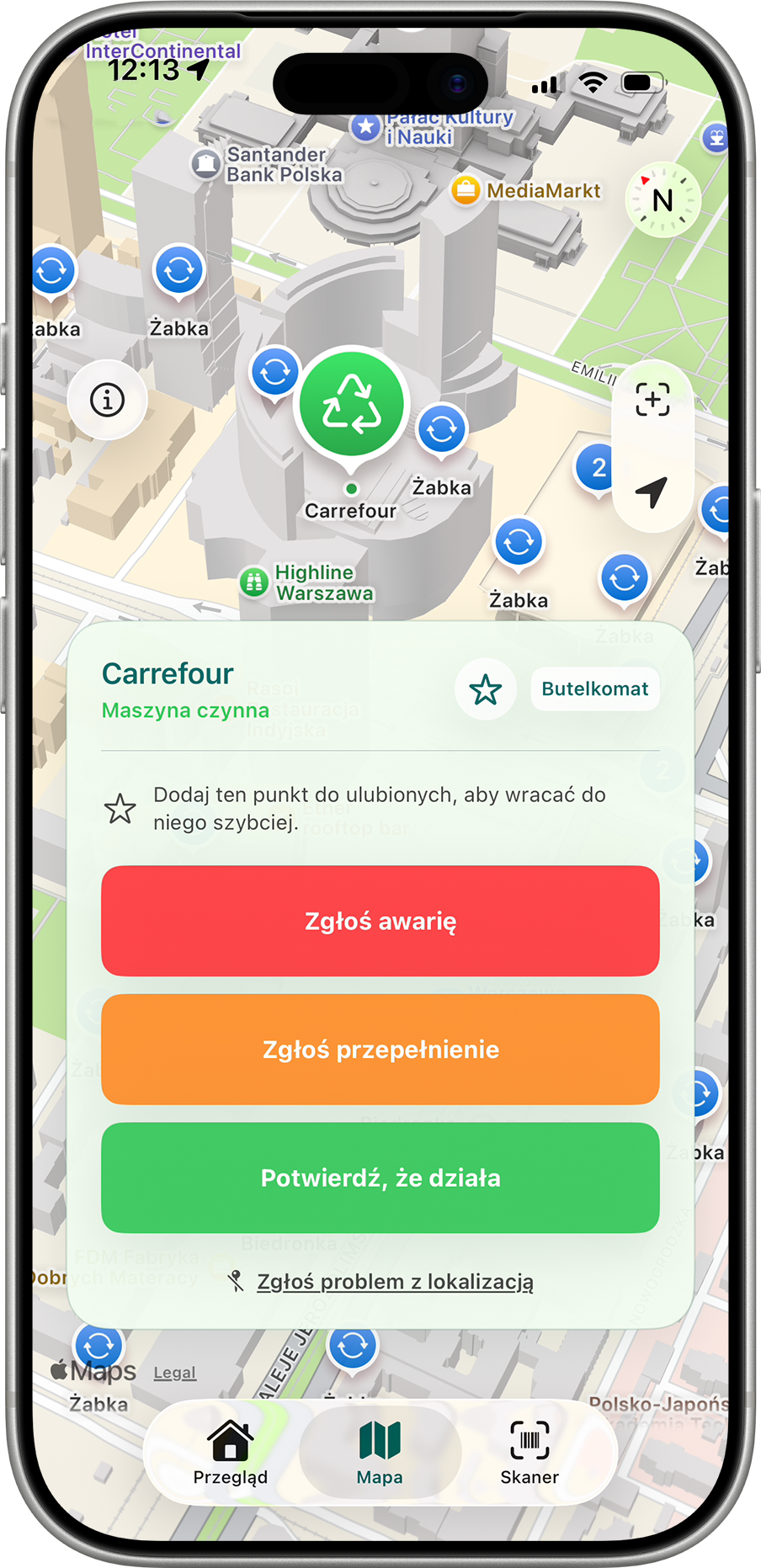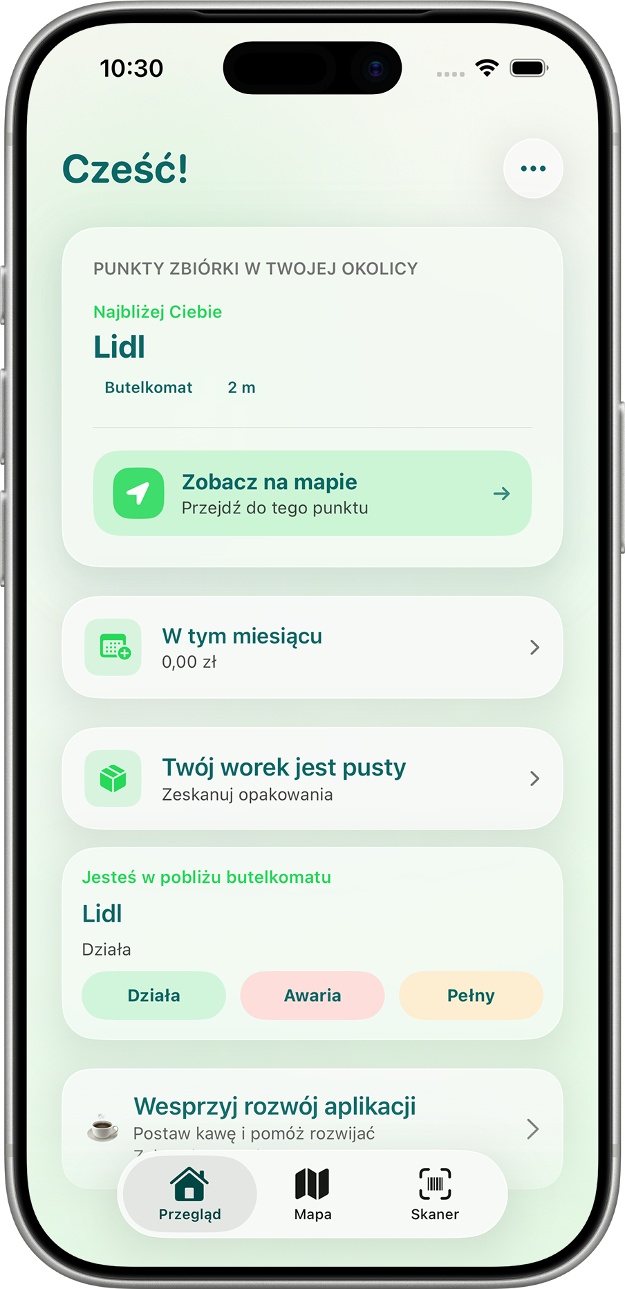 In the app, you can check a map of return points and machines across Poland, making it easier to find a convenient location.
